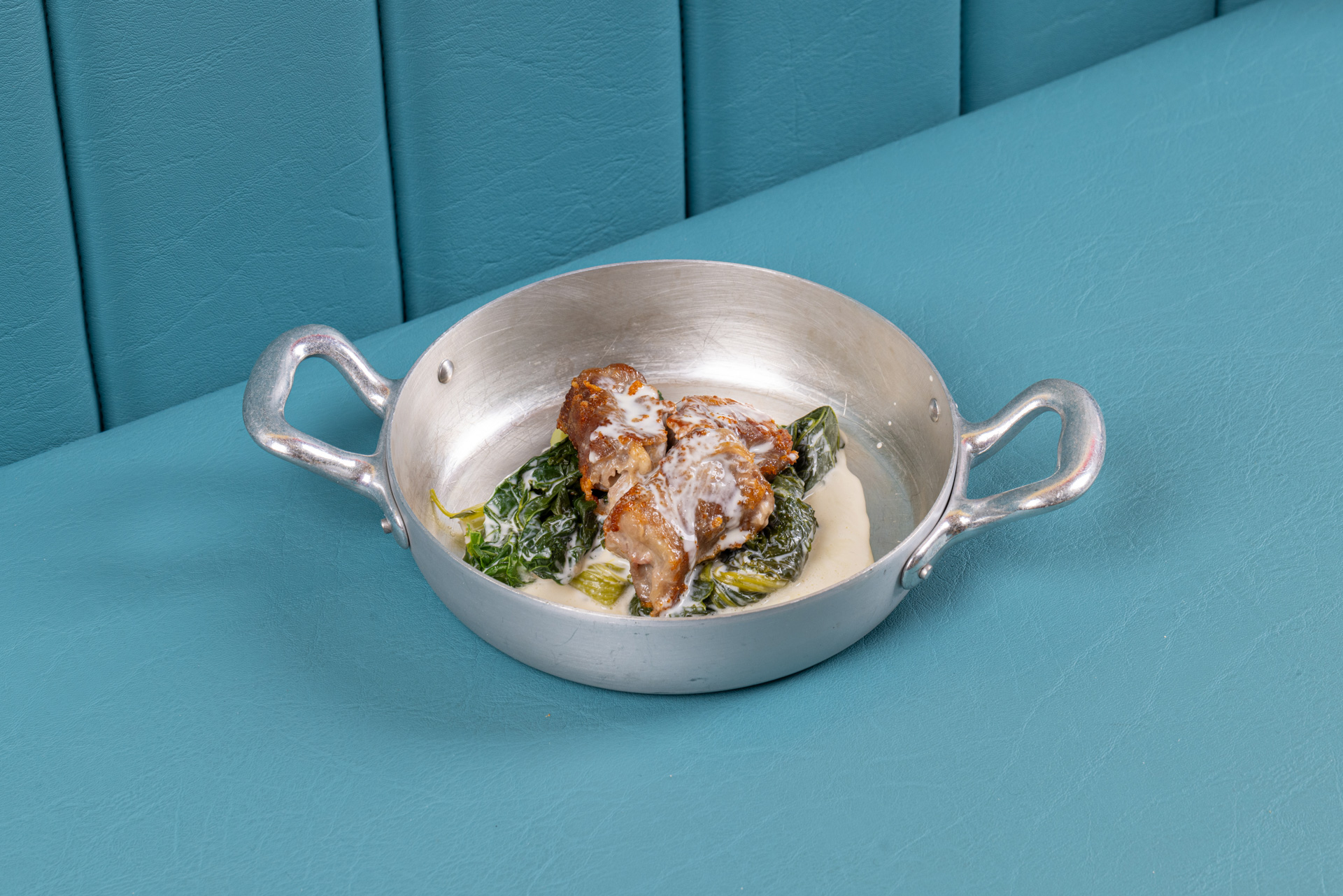 Esplosione di sapori con le Bombette di Caciocavallo, la freschezza delle Cime di Rapa e la cremosità della Fonduta di Parmigiano. Un'esperienza gustosa e irresistibile per il palato